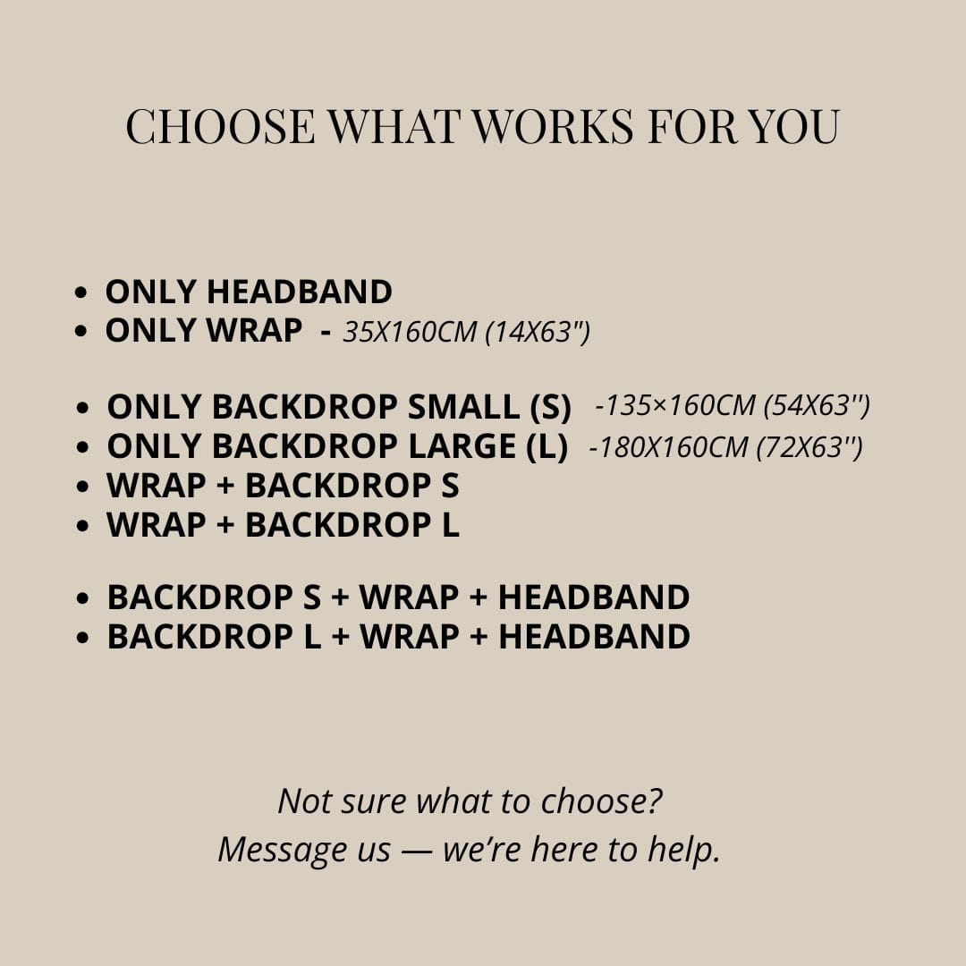 Safety Instructions: The product is intended exclusively for professional photography sessions and for use by professional photographers. Never leave a baby unattended while using the product or when near it. The product is not intended for daily use or as a sleeping blanket. Ensure that the material does not obstruct the baby’s airways. If wrapping the baby with this product, wrap loosely to allow proper ventilation and constantly monitor to ensure the baby can breathe freely. Always position the baby with the utmost care and caution. We are not responsible for any misuse of the product, including improper or unskilled use.